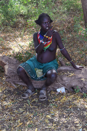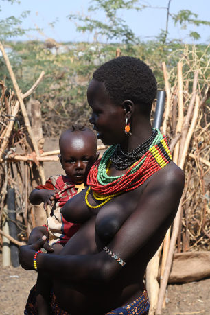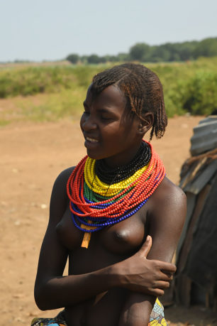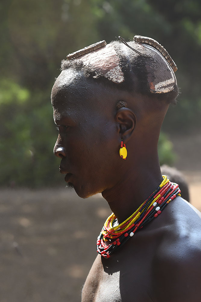 Lors de la circoncision, des ornements spécifiques sont remis à l’adolescent : bandeau de perles, collier de racines, arc et flèches, deux calebasses et un pagne spécial. Le Dimi est un rituel collectif auquel participent pendant six semaines tous les hommes d’un groupe dont la fille atteint la puberté. Le père de la jeune fille sacrifie un nombre important de têtes de bétail, préfigurant ainsi la dot qu’il recevra lors du futur mariage. Cet événement marque l’entrée de l’homme dans le monde politique de la tribu. A la fin de la cérémonie des plumes d’autruche sont piquées dans ses cheveux, une peau de léopard couvre ses épaules ; réapparaît, alors, le pagne de la circoncision auquel s’ajoutent des bracelets en queue de vache, un petit bouclier et une canne.