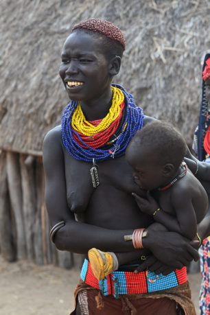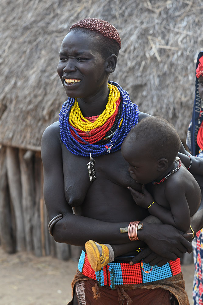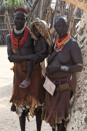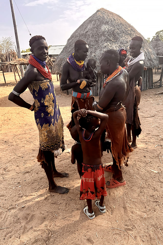 Les femmes Kara sont célèbres pour leur beauté et leurs coiffures uniques. Elles rasent les côtés de leurs cheveux et laissent la couronne qu’ellls tordent en nœuds bulbeux à l’aide d’ocre rouge mélangée à du beurre. Elles percent également leurs lèvres inférieures et les ornent de minuscules bâtons.